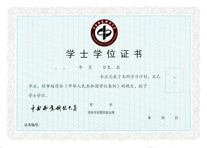 班戈大学林学学士学位证书样本